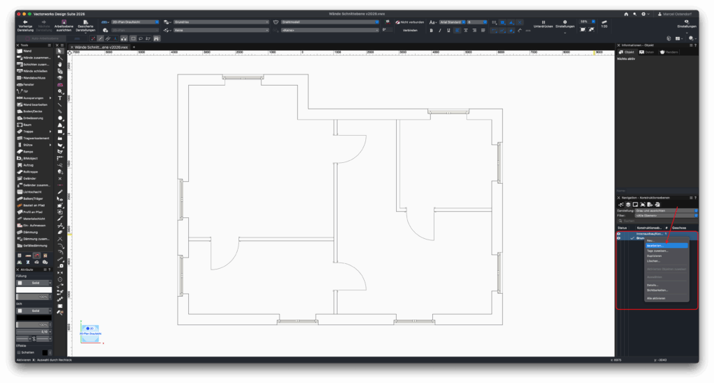 Um schnell Einstellungen eines Ansichtsbereichs oder Schnitts auf einen anderen zu übertragen, empfehlen wir die ab Vectorworks 2024 verfügbaren Schnittstile zu verwenden.