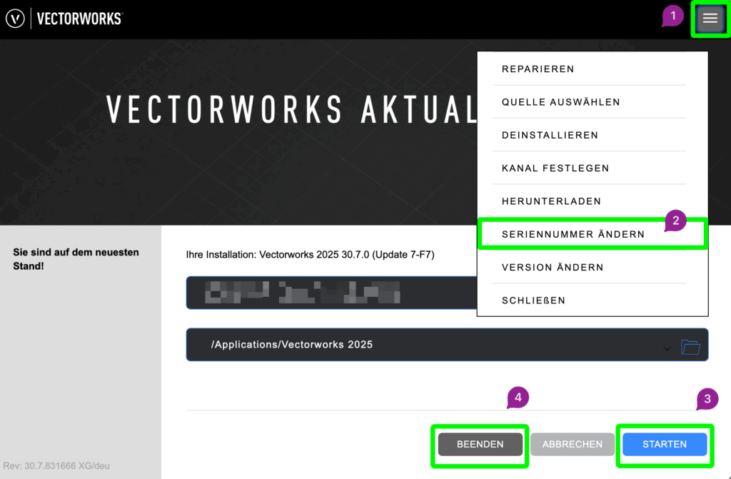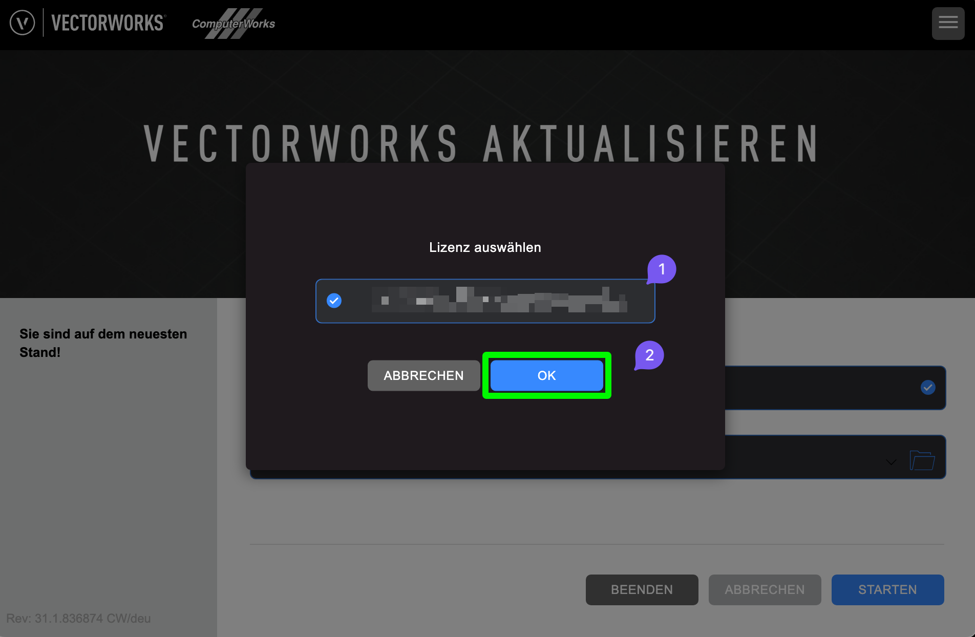 - Stelle im erscheinenden Dialogfenster unter Programmeinstellungen sicher, dass die aktuellste Vectorworks-Version ausgewählt ist: