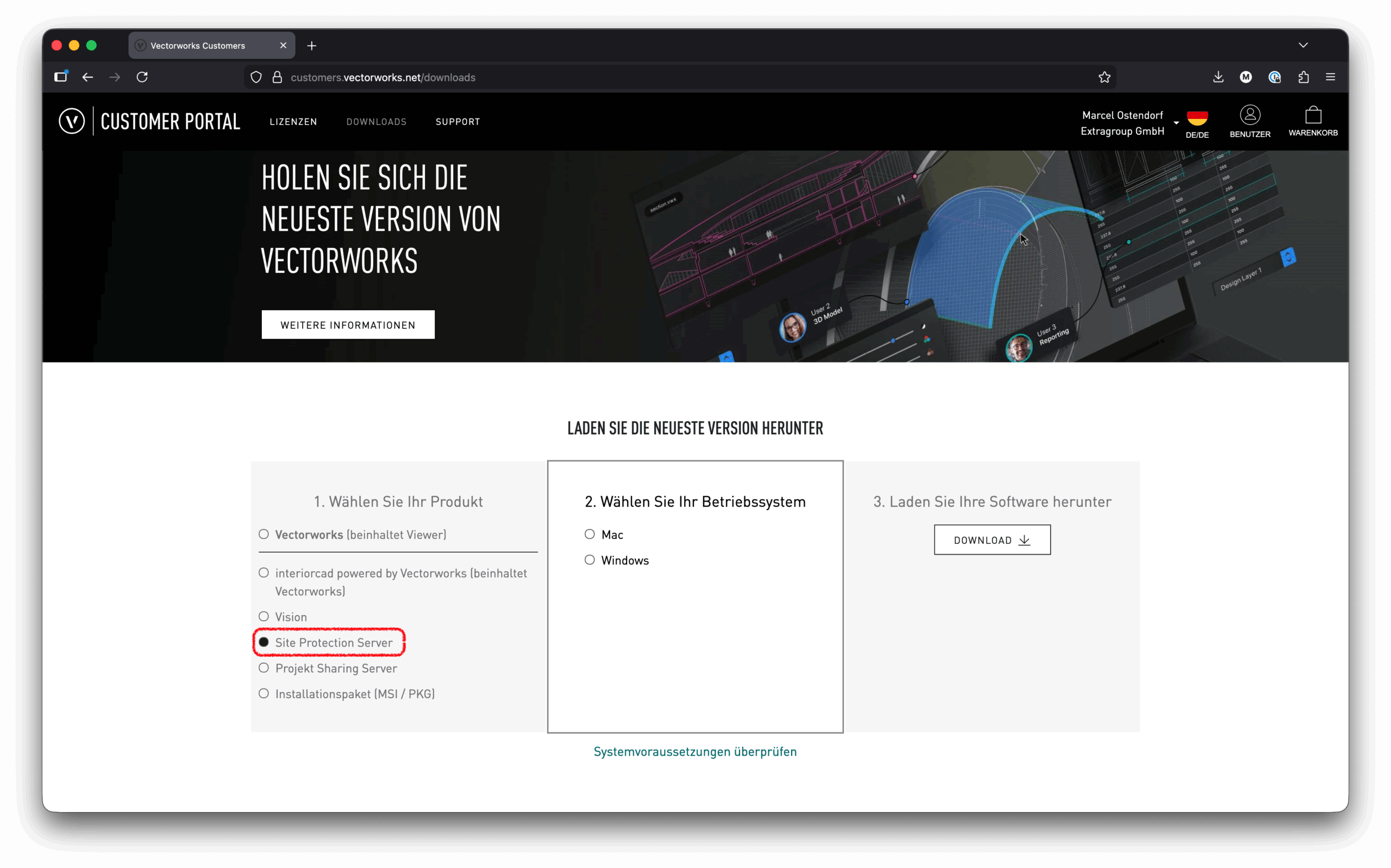 Vectorworks benötigt Administratoren-Lese- und Schreibrechte für eine optimale und schnelle Funktion. Kontaktiere hier zur Überprüfung deinen Systemverantwortlichen.