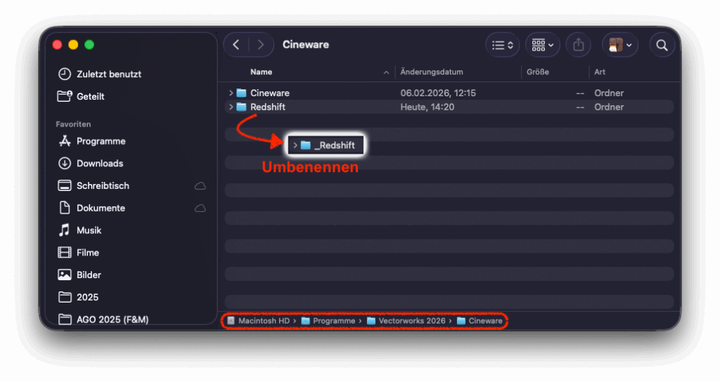 - Vectorworks-Installationsordner. Standardmäßig wäre das: